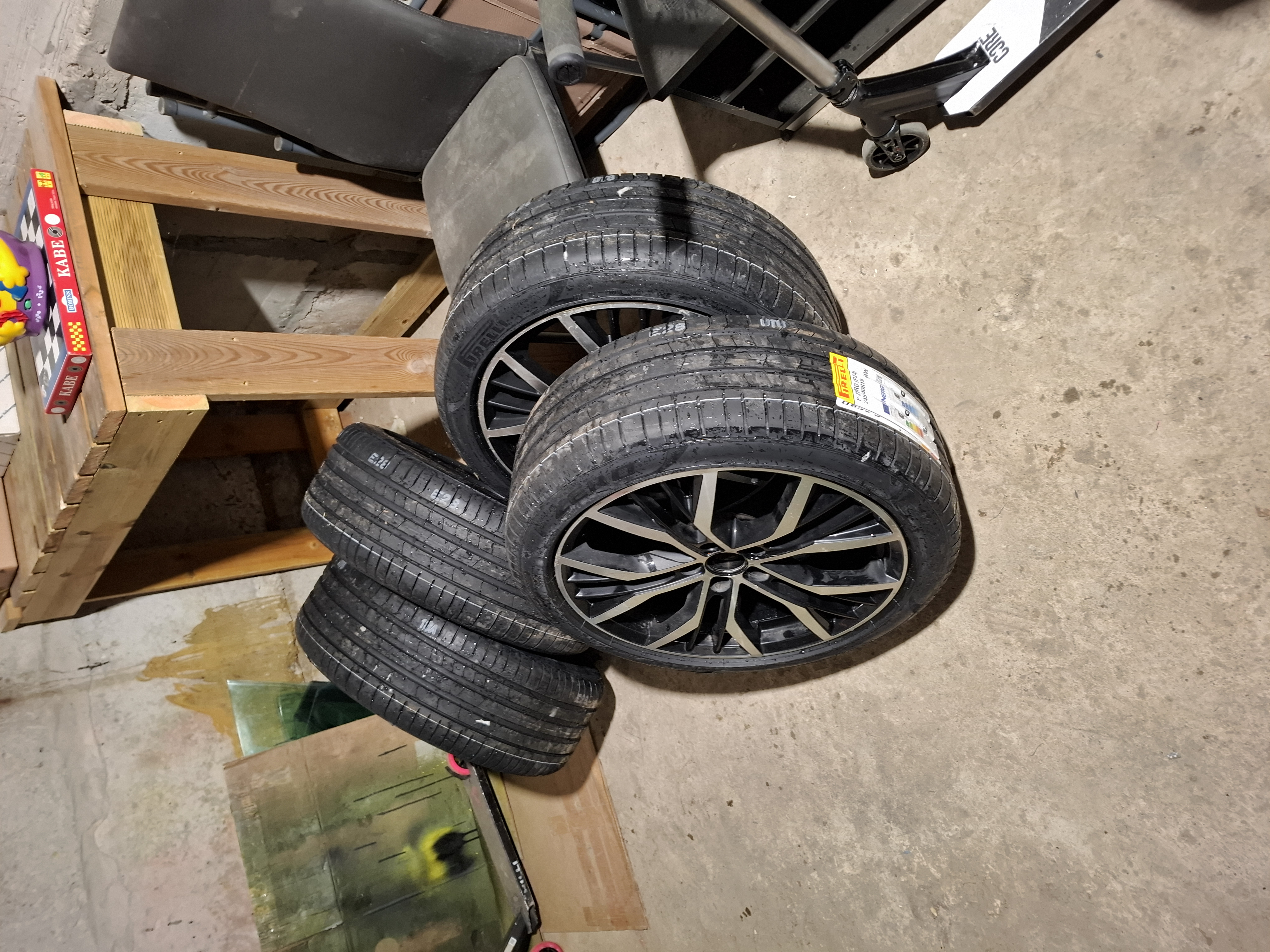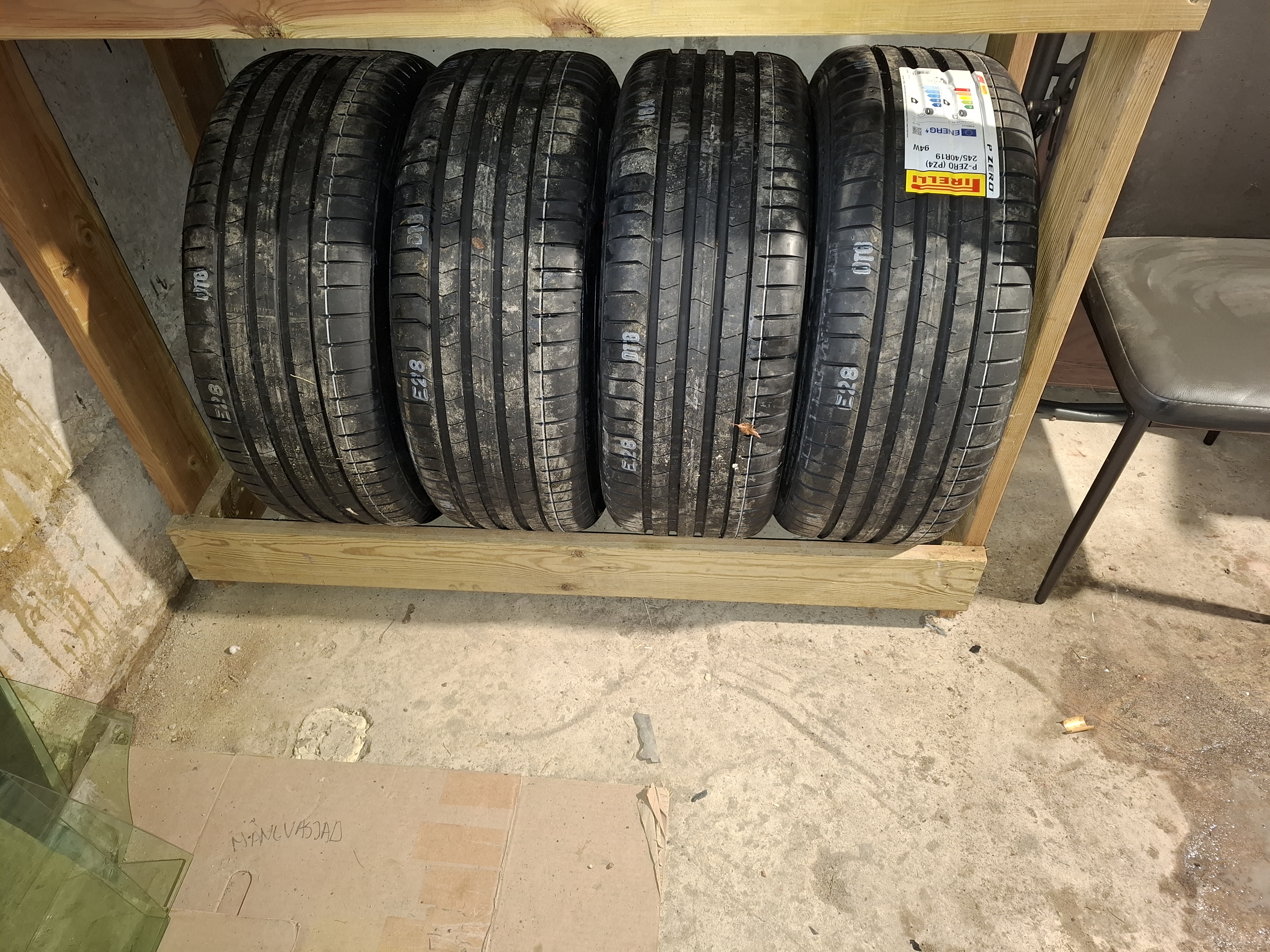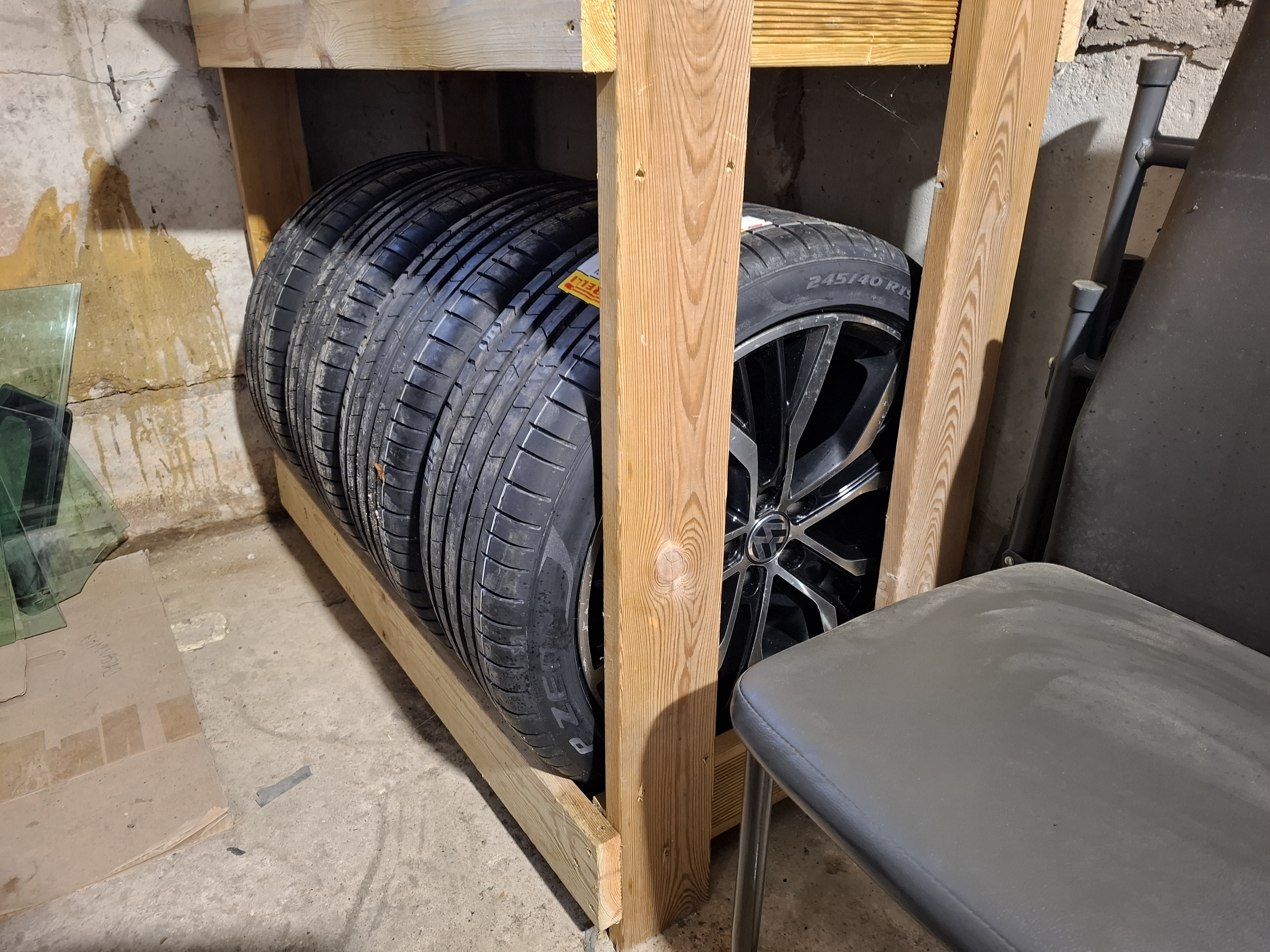 Mis seal ikka. Viskasin siis rehvid ringi. Vanad prügisse ja uued peale. Veljed tahaks saada taastamist. Üks velg viskab väheke.