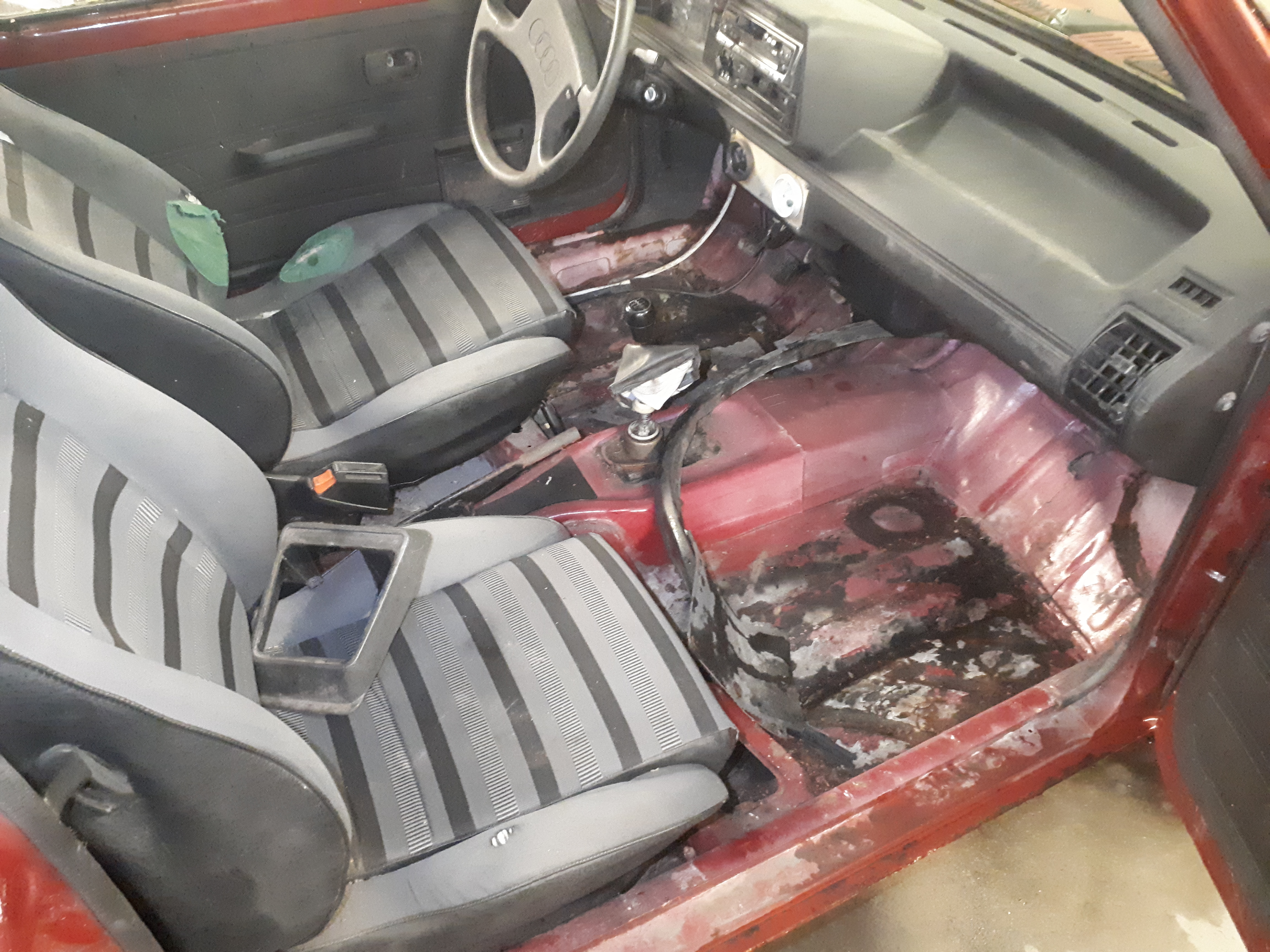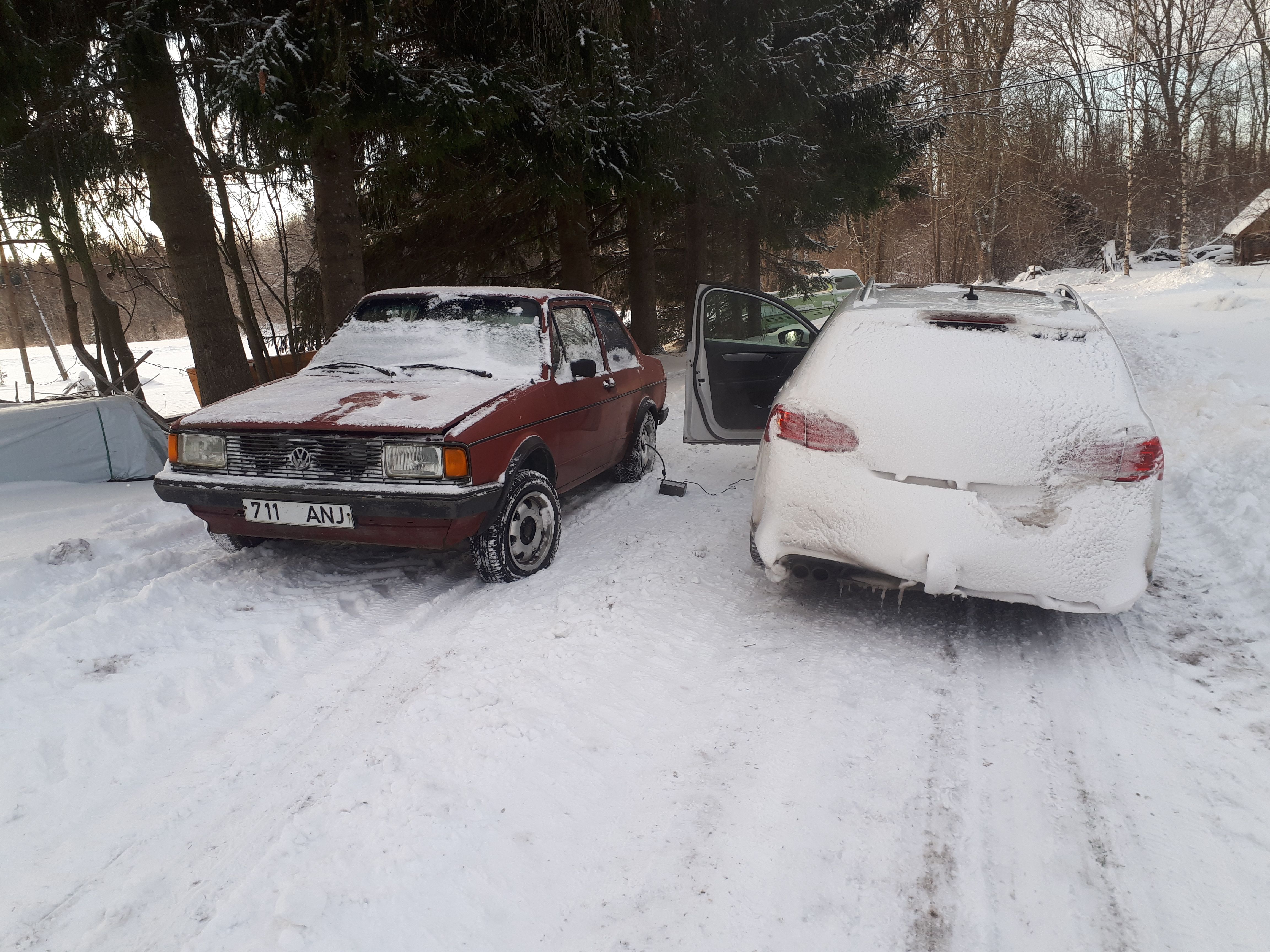 Imelikul kombel, maeiteamiks, sattus mulle üks vana jetta. Kas just seda nüüd vaja oli, ei tea. Tõmbas selle poole just see, et 2 ukseline. Läksin vaatama, üsna kindel olles, et tühjade kätega ma tagasi ei tule, kuna see vanade autode haigus lööb ikka veel vahepeal välja. Istus seal nukralt lume all, külm oli kah, isegi seest oli härmas. Vaatasin siit ja sealt ja ikka need tüüpkohad nagu ikka, aukus. Kuigi peab tunnistama, et minuarust täitsa hea eksemplar. Natuke parem kui roheline golf oli, kuid samas ikka palju parem kui kollane on. Leppisime kokku ja järgmine päev sai treilaga ära toodud. Pagassi lahti ei saanud, kuna lukk oli arvatavasti jääs. Samas hiljem selgus et lukk katki. Sai siis katkise tule august käsi sisse aetud ja lahti tehtud. Oh sa! Põhjamatt olemas ja täiesti terve. Armaturi alumine pool ka olemas. Uued esi kettad ja klotsid ka pagassis ja muud prügi ka. Hiired olid seal omajagu tralli teinud, õkk.