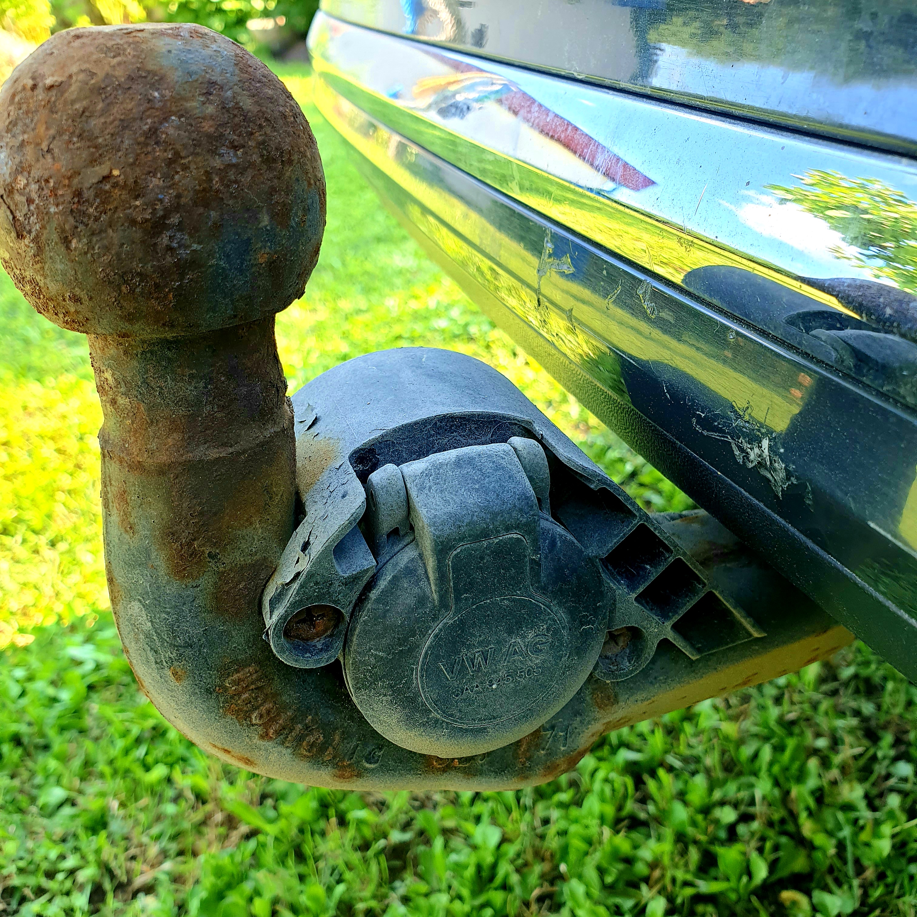 Konksu küljes on näha esimese pildi juures kaks kinnitus poldi jaoks kõrva. Tagumisel on ka polt sisse jäänud. Seega,pistiku kronstein oli mädanenud,kui käru pistikut oli vaja suruda kärule. Mingit uut konksu sellepärast vaja pole.Keevitage uus kronstein ja asi korras. Iseasi kuidas pistiku sisu on. See oleks teine teema.