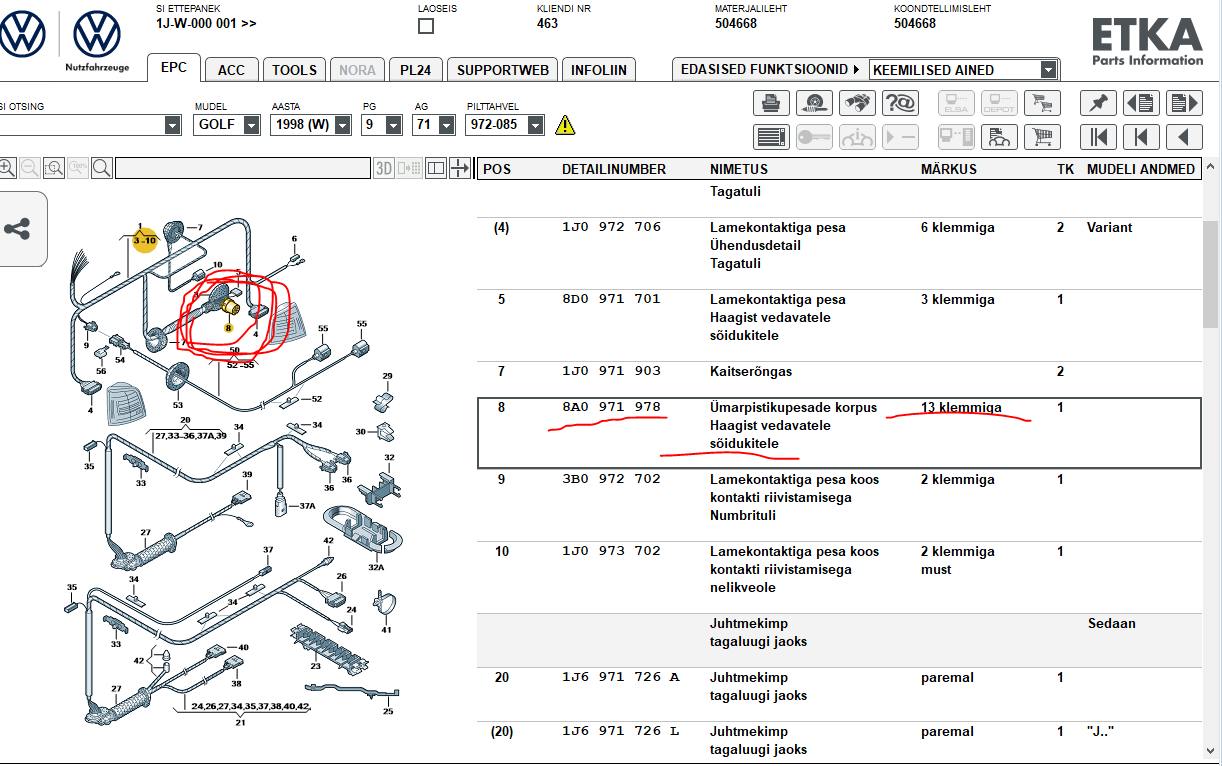Vahi nüüd silm punnis tehase varuosa kataloogi väljavõtet 98a Golf4 pistikutest.