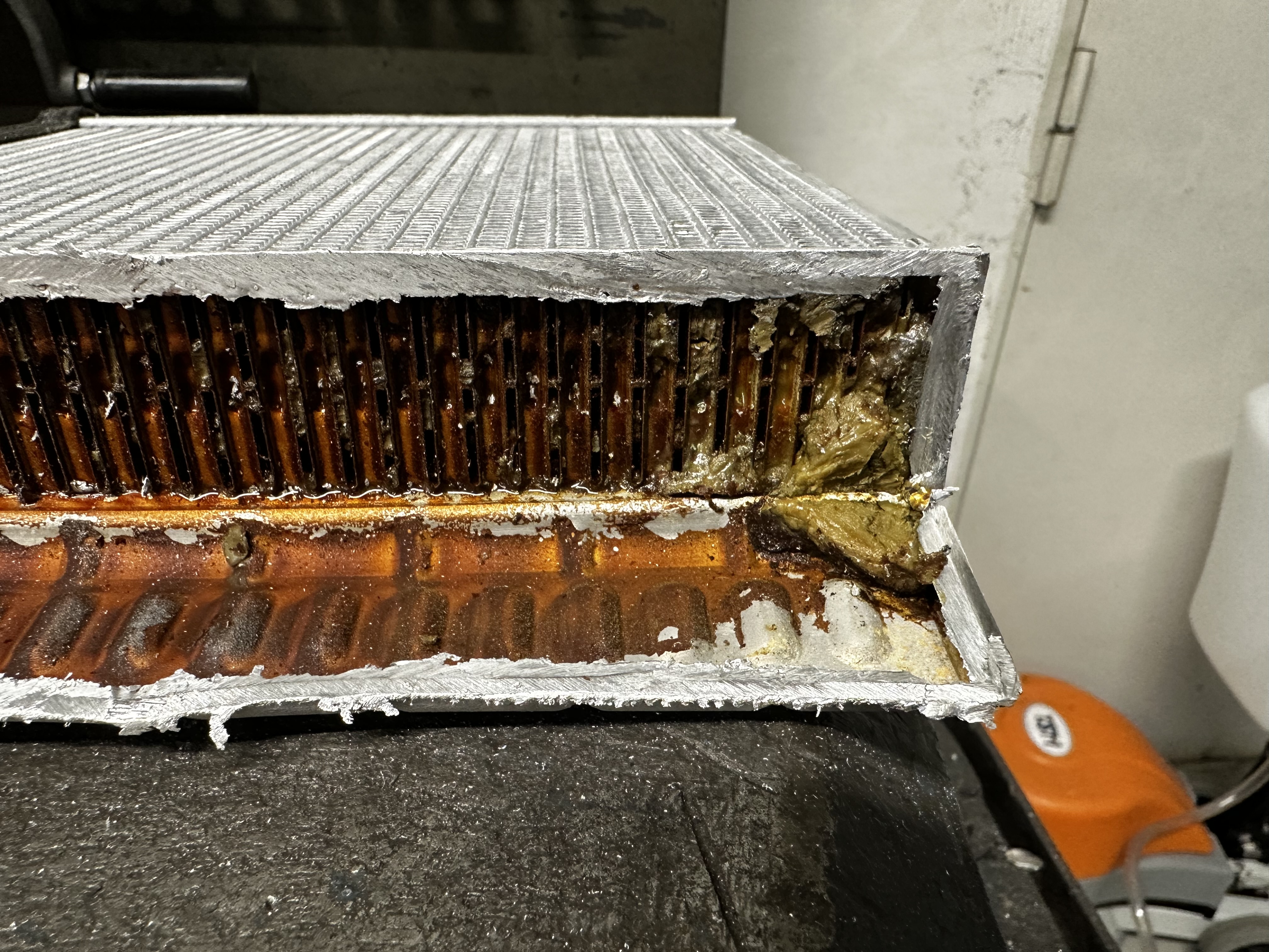 B8 salongi radiaator. Jääb arusaamatuks,kui auto on alles ,,poisike,, ,ja kasutatakse jahutus vedelikku garantii ajal siis kuidas selline ummistus ? Miks imestan. Vanadelt (ca.15,20 a.) vahetatud salongi radikaid lekke pärast. Mitte,et soojust ei tulnud. Need olid ümar torudega radiaatoris. Nüüd pilti vaadates on tegemist lapik torudega radiaatoris. Tehniliselt,mis siis. Küsimine. Kuidas on võimalik kvaliteetse jahutus vedeliku korral radiaatori torud ummistada.