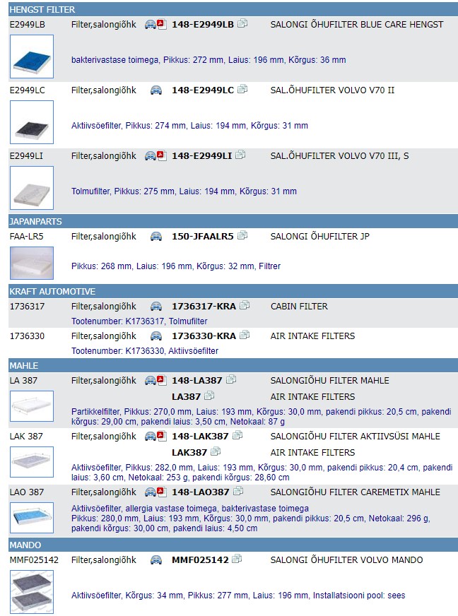 Kataloogides on filtrite mõõdud ära toodud - valid õige mõõduga toote oe numbri ja selle järgi töötad tulevikus.