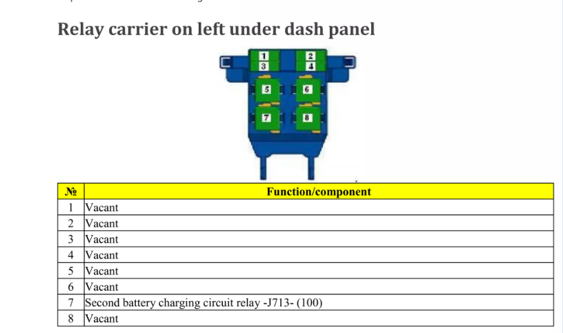 Panin sulle pildi ka skeemist kust seda releed näha saad. Tõlge numbrile 7 - Teise aku ringluse laadimise relee - j713 -