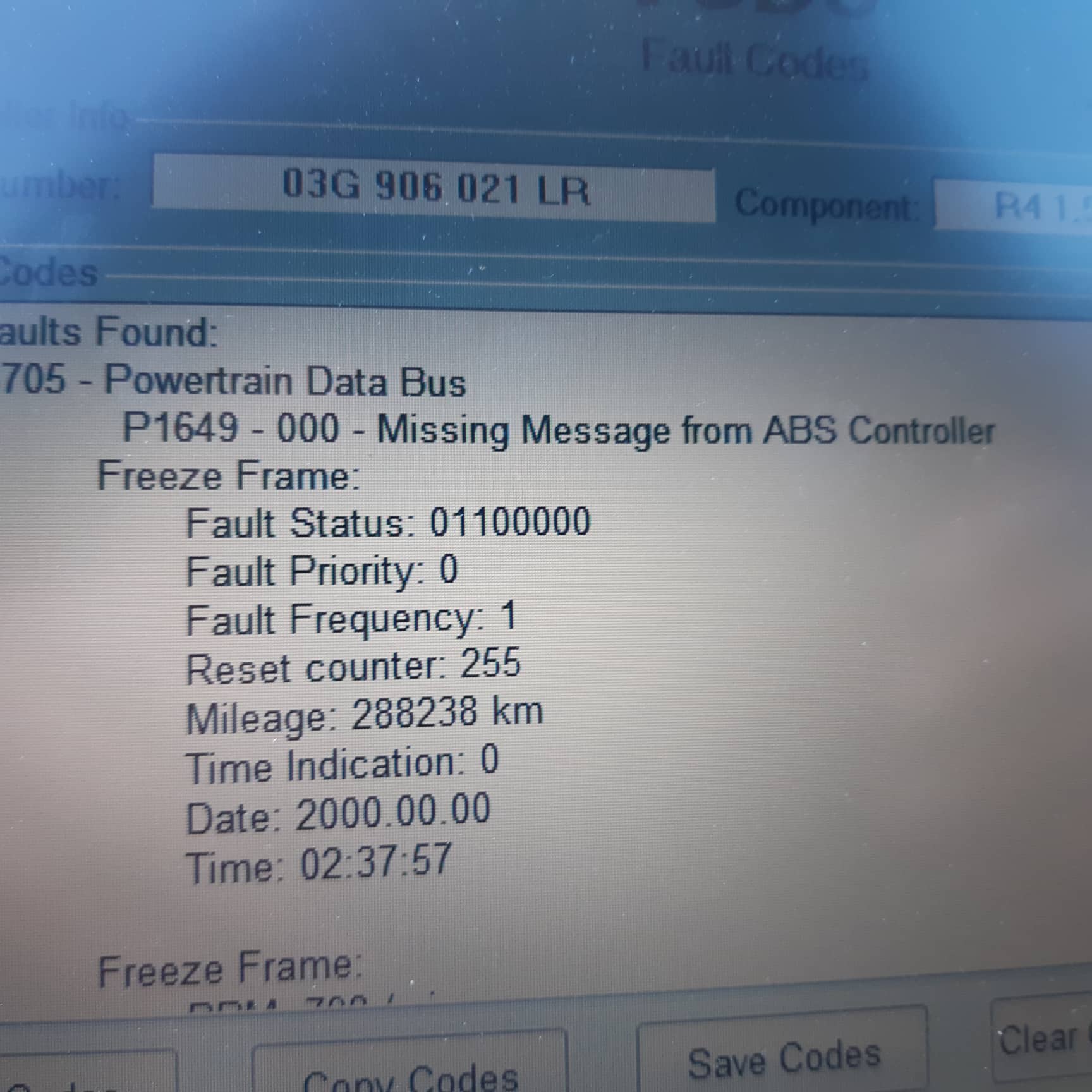 ABS juhtplokki arvutiga sisse ei lase ,mootori juhtplokist saab sellised veakoodid kätte