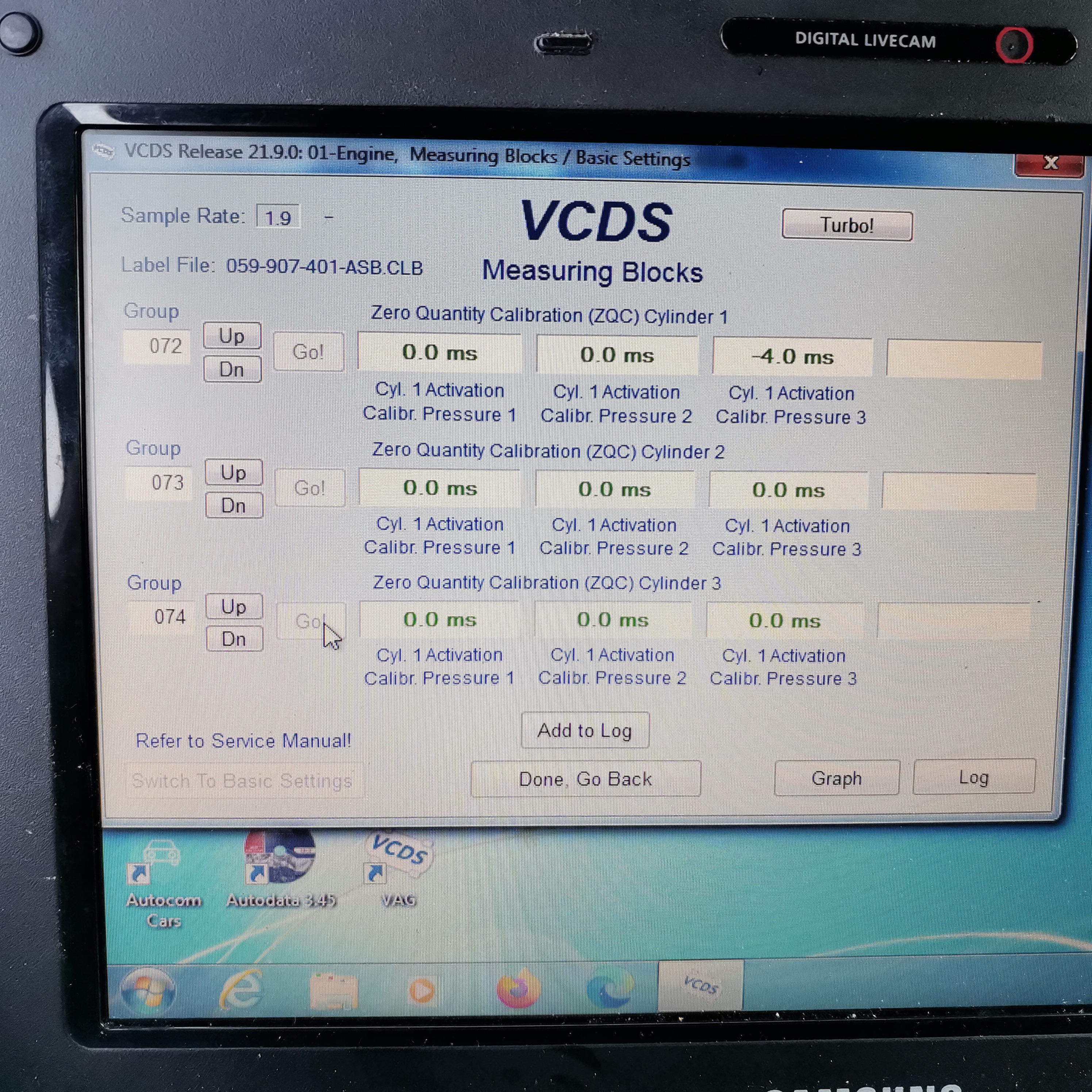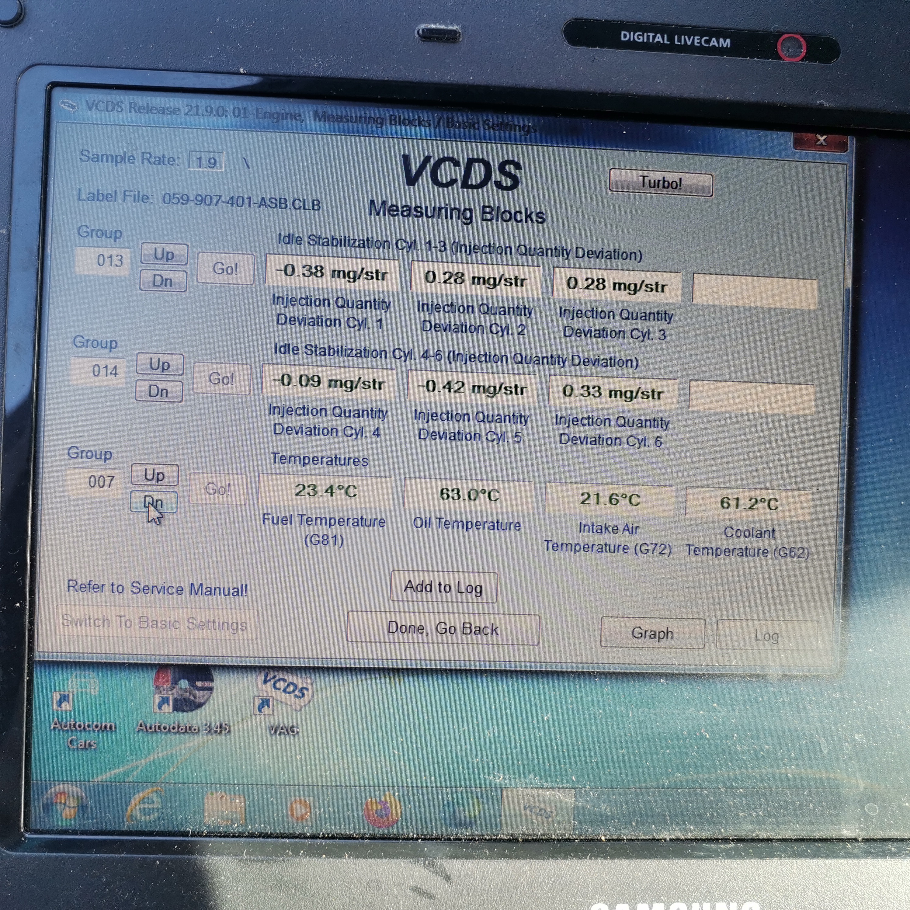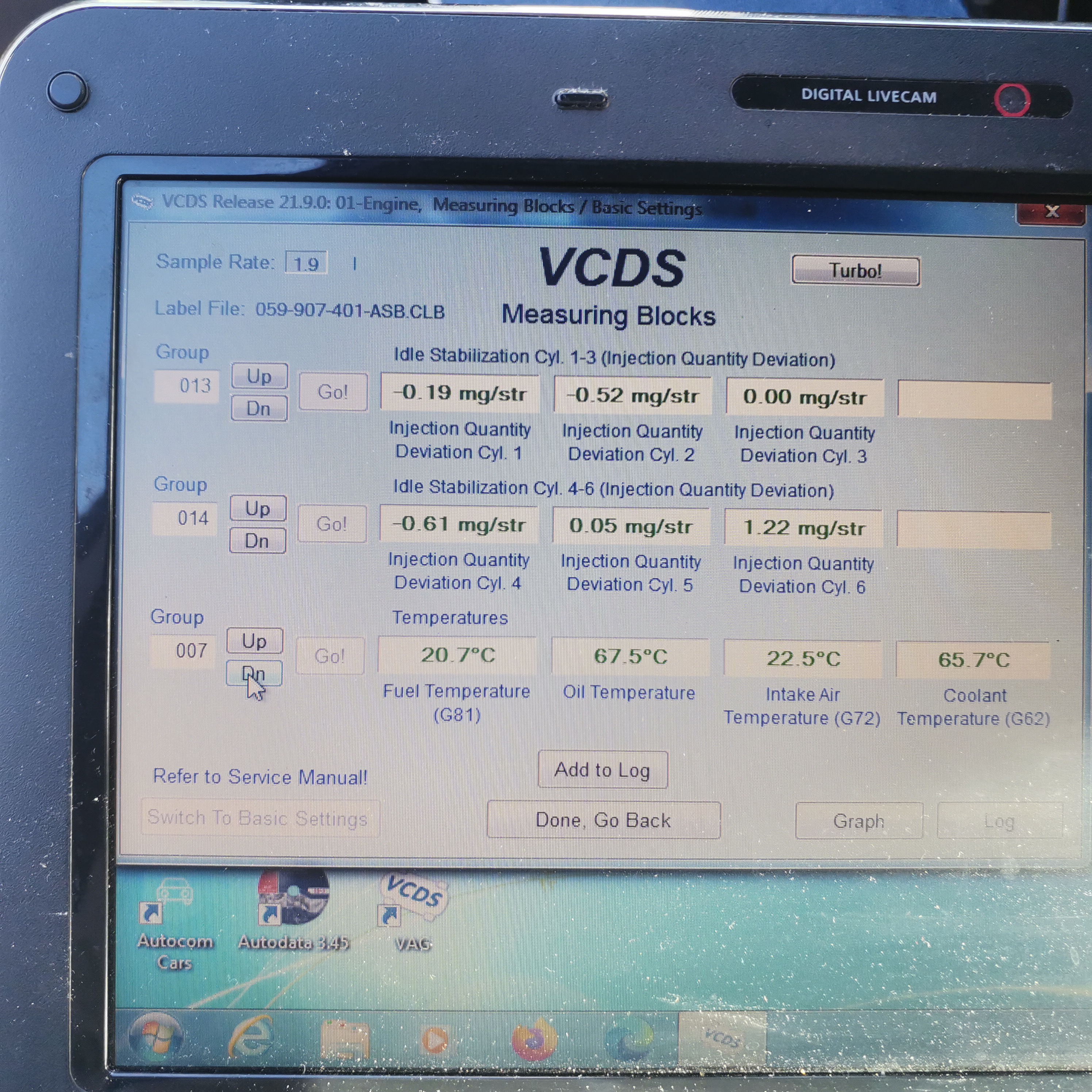 Võtsin ühe asjalikuma mehega ühendust ja vaatasime grupp 72-77 õiged näidud üle ja hetkel olevate pihustite kodeeringud(vastavalt silindrile pihusti kodeering) . Mille tulemusena otsustasin tellida uued pihustid..