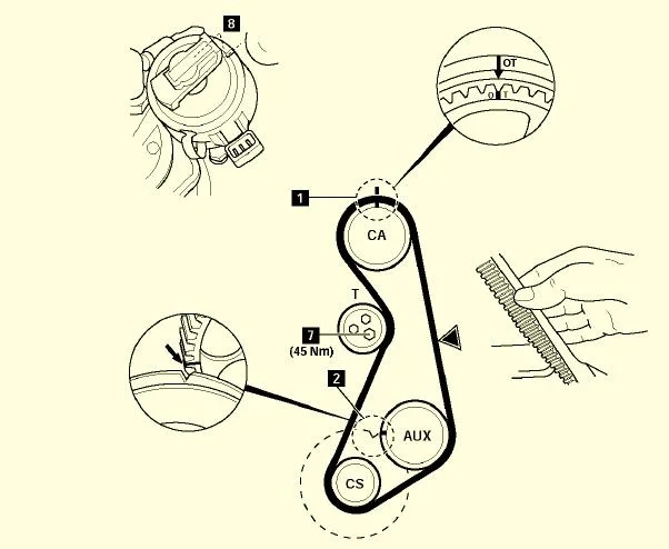 Silindrite surved võiks ka igaks petteks üle kontrollida - saab osa asju välistada. AUX on vahevõll, mille märk peab kokku langema välise rihmaratta sälguga - selleks pannakse kontrolliks korra väline rihmaratas ilma rihmakaaneta tagasi külge.